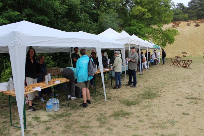 Collation proposée par l'Enjambeur et offerte par l'association de Sauvegarde des Sablières © CENCA - Emmanuèle Savart NB : pour la preservation du site tous les matériaux utilisés lors des ateliers n'ont pas été prélevés sur place (sable notamment), en accord avec la réglementation de la Réserve Naturelle.