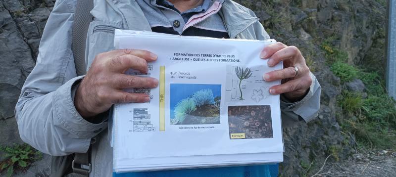 Ensuite, nous quittons les bords de la réserve naturelle pour découvrir l’étage du Frasnien avec la présence de fossiles de gros brachiopodes.