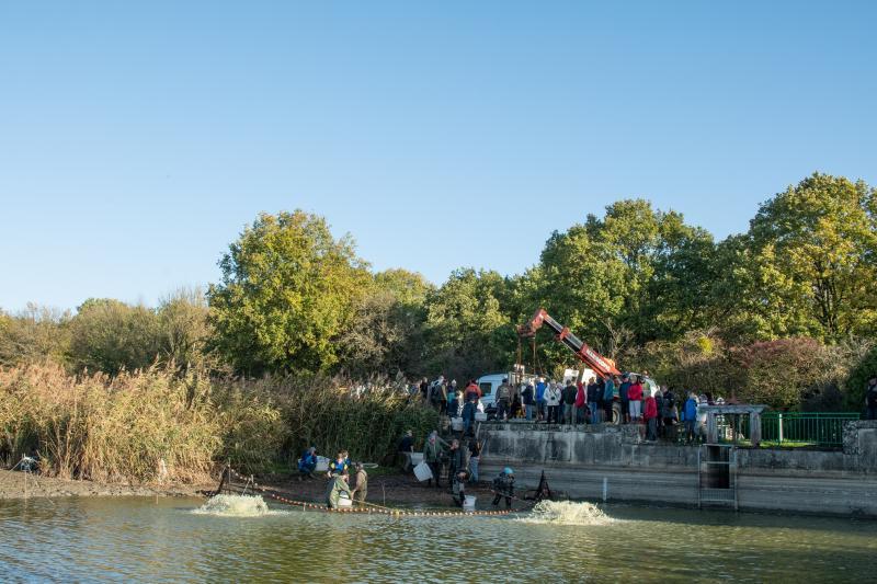 La pêche de l’étang du Bas a eu lieu le 1er novembre. Environ 200 personnes sont venues pour l'occasion. Parmi elles, une quarantaine (pisciulteurs, gestionnaires et bénévoles des différentes associations) ont permis de tirer les filets, remplir les bassines, trier et peser le poisson.