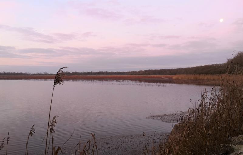 Vue matinale du bassin sud de l'étang de la Horre © CEN Champagne-Ardenne