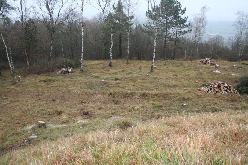 De nombreux pins et bouleaux ont été coupés et mis en tas afin de remettre en lumière la pelouse calcaire de ce site. Les tas de bois et de branchages serviront d'abris pour la petite faune.