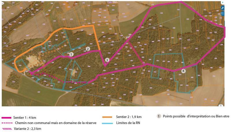 Un schéma de circulation a été imaginé pour le massif de la Sablière. Il s’appuie sur le réseau de sentiers existant (chemins ruraux notamment) et propose deux sentiers principaux pour le massif :