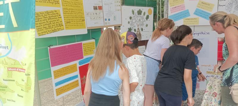 Après plusieurs mois d’apprentissage sur le sujet scientifique choisit, les élèves des 4 classes primaires ce sont rencontrés mardi 20 juin à Fromelennes, à l’ombre des arbres du Bois de Nichet.