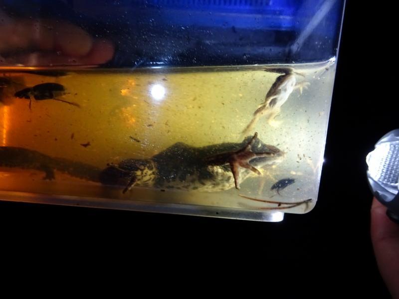 Dans le cadre de l’opération « Fréquence Grenouille » et en partenariat avec la Ville de Sézanne, le CENCA et l’ONF ont invité les curieux de nature à la découverte des animaux de la nuit sur les pâtis de Sézanne, site inscrit au réseau européen Natura 2000. Au programme : découverte du mode de vie des animaux nocturnes, aperçu des lieux où ils vivent et écoute des bruits de la nuit. Ce n’est pas moins de 20 personnes qui ont eu le plaisir d’observer plusieurs espèces d’amphibiens au sein des mares du site comme le Triton palmé ou encore le Triton alpestre ! Les participants ont également croisé la route d’autres habitants peu connus des habitats aquatiques : connaissez-vous par exemple la notonecte, l’acilius et la phrygane ? Les chouettes et hiboux ont quant à eux été plus timides en cette belle soirée de printemps…