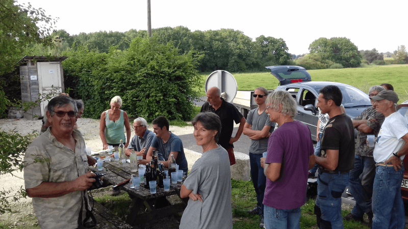 Un goûter bien mérité a conclu ce bel après-midi : chacun avait ramené des produits locaux et régionaux dont nous avons tous pu profiter : jus pomme-framboise, bières et limonades locales, sirop de fruits rouges, confiture de pissenlit et gelée de fraise étaient au menu.