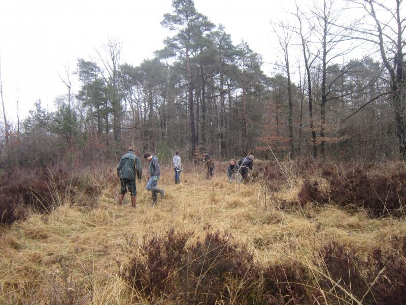 Leur mission était de remettre en lumière les landes et les mares, de limiter le comblement des mares afin de favoriser l’accueil des amphibiens et des insectes aquatiques.Ce chantier nature consistait à couper et mettre en tas les rejets ligneux en vue d’être exportés ultérieurement.