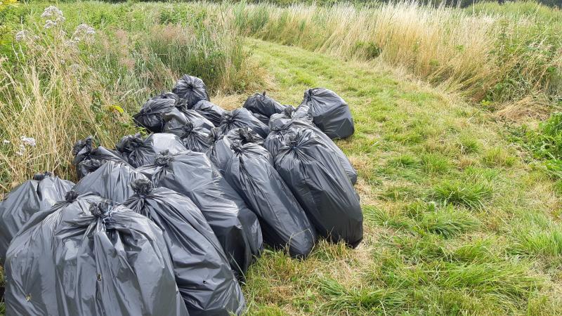 Deux groupes de 10 et 15 personnes se sont succédé le matin et l'après-midi afin d’arracher deux espèces exotiques envahissantes : l'aster à feuilles lancéolées et le solidage du Canada. Elles ont ensuite été mises dans des sacs poubelles et exportées hors du site. Les bénévoles du jour ont été très efficaces puisque 65 sacs ont été remplis ! Ils seront incinérés afin d’éviter la propagation de ces deux espèces invasives.
