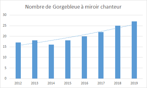 Depuis le classement en Réserve Naturelle Régionale en 2012, les effectifs de mâles chanteurs semblent être en légère hausse chaque année.